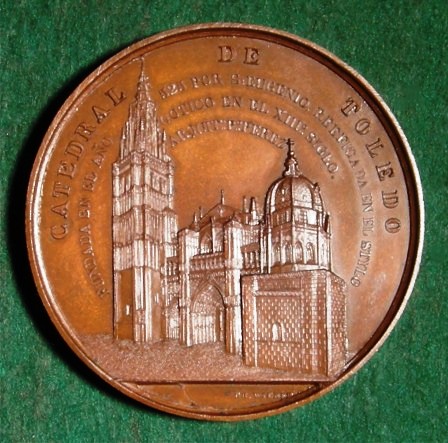 CATHEDRAL OF TOLEDO WIENER, Charles: Spain, 1850, Bronze, 59 mm The Cathedral of Toledo, founded by St. Ferdinand in