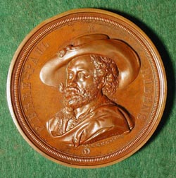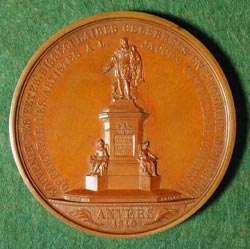 PETER PAUL RUBENS PORTRAIT MEDAL HART, Laurent Joseph: Belgium, 1840, Bronze, 72 mm Peter Paul Rubens (1577-1640) was a Flemish painter, engraver, designer and architect and the most influential Baroque artist of Northern Europe. He was born in Westphalia but worked in several European countries, including Belgium (particularly in Antwerp, where they erected a monument in his honor), Italy and France, gaining an international reputation with his huge, vigorous paintings. Rubens worked for many of the royal families of Europe, his most notable commissions including 25 gigantic paintings of Marie de' Medici and a group of more than 100 mythological paintings for Philip IV of Spain. He was also appointed court painter to Archduke Albert of Brussels, was knighted by Charles I of England, and again by Philip IV of Portugal upon his completion of negotiations establishing a treaty between Portugal and England. This medal, showing his monument in Antwerp, commemorates the 200th year of his death. LINK to BIOGRAPHY AND PAINTINGS BY RUBENS (from WebMuseum by Nicholas Pioch) |