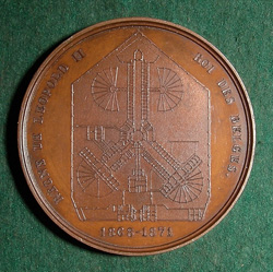 JEHOTTE, Constant: Belgium, 1871, Bronze, 60 mm Tournay (Tournai) is a town in the province of Hainaut, Belgium, on the Scheldt, 35 miles southwest of Brussels. In the 5th century it was the seat of the Merovingian kings. It is noted for its fine Romanesque cathedral. Tournay also has a number of fine churches, including the church of St. Brice. In this church is the tomb of Childeric which had among it relics 300 small golden models of bees. The bees were moved to Paris, and when Napoleon was crowned emperor a century and a half later he chose Childeric’s bees for the decoration of his coronation mantle. In this manner the bee became associated with the Napoleonic legend just as the lilies were with the Bourbons. Tournay is now known for its flourishing manufactures of hosiery, linen, carpets, and porcelain. Francios Derre, the architect of this prison, was a sculptor as well as an architect. He specialized in the construction of prisons, designing those at Louvain, Hasselt, Gand, Mons, and Termonde, in addition to this one at Tournay. |
