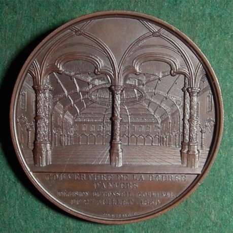 CHARLES HENRY MARCELLIS: STOCK EXCHANGE AT ANTWERP WIENER, Leopold & Jacques: Belgium, 1854 , Bronze, 60 mm