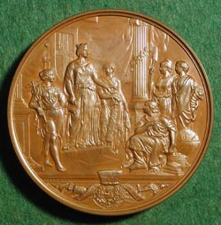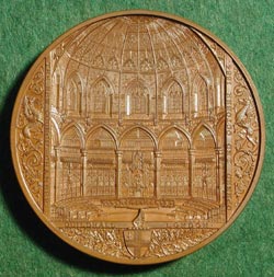 Obv: Interior of Council Chamber surrounded by scroll work, with wreath of