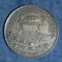 Obv: City of Leipzig below two angles holding an oval shield with two