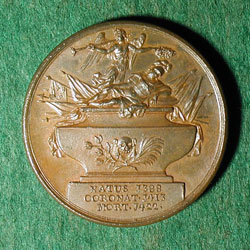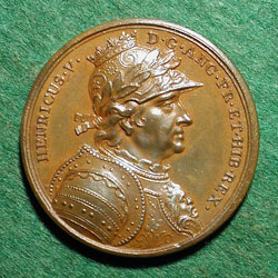 Henry V (1387-1422), King of England (1413-1422), was the eldest son of Henry, Earl of Derby (later Henry IV) and Mary de Bohun. On his father’s exile in 1398, Richard II took the boy into his own charge, treated him kindly, and knighted him in 1399. As prince, he gained useful military experience during campaigns against Owain Glyn Dwr. On his accession, Henry crushed a Lollard rebellion. He renewed English claims against France in the Hundred Yar’s War and won a decisive victory over Charles VI of France at Agincourt in 1415, making England one of the strongest kingdoms in Europe. Further conquests in Burgundy resulted in the Treaty of Troyes, when Charles VI recognized Henry as his heir. The following month Henry married Catherine of Valois, daughter of Charles VI, King of France. However, he did not live to enjoy his triumph for long, dying of fever in 1422. (Taken, in part, from Thompson and O’Brien) |