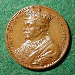 Henry VI (1421-1471), King of England (1422-1461, 1470-1471) succeeded his father Henry V in 1422, and on the death of his maternal grandfather, the French King Charles VI, he was proclaimed King of France in accordance with the terms of a treaty made after Henry V’s French victories. Henry lost most of his French territories later in his reign. In 1445 Henry married Margaret of Anjou, a niece of the French queen. Henry had a period of insanity from 1453-1454, during which Richard, Duke of York was Lord Protector, but Richard’s hopes of ultimately succeeding Henry were shattered by the birth of Edward, Prince of Wales. In 1455 Richard defeated Henry’s forces at St. Albans, the first battle in the Wars of the Roses between the houses of Lancaster and York. Although Richard was killed at the Battle of Wakefield in 1460, Henry was deposed in 1461 by the Yorkists, who proclaimed Edward IV as king. Henry went into exile in Scotland but returned in 1464 to once again lead the Lancastrians, though in defeat. Imprisoned between 1465 and 1470, he was restored to the throne in 1470 by Richard Neville, Duke of Warwick. The death of Prince Edward in the battle of Tewkesbury, however, sealed Henry’s fate, and he was murdered in the Tower of London soon afterwards. (taken, in part, from Thompson and O’Brien). |