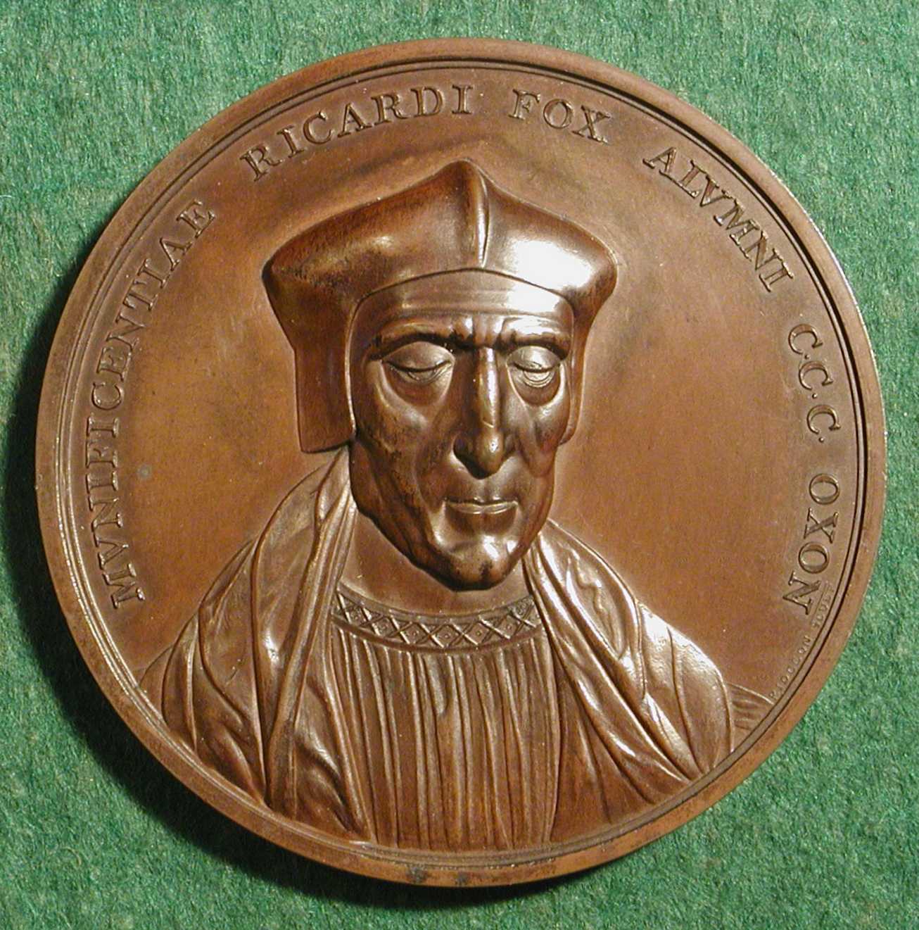 Obv: Bust of Richard Fox MVNIFICENTIAE RICARDI FOX ALVMNI C. C. C. OXON