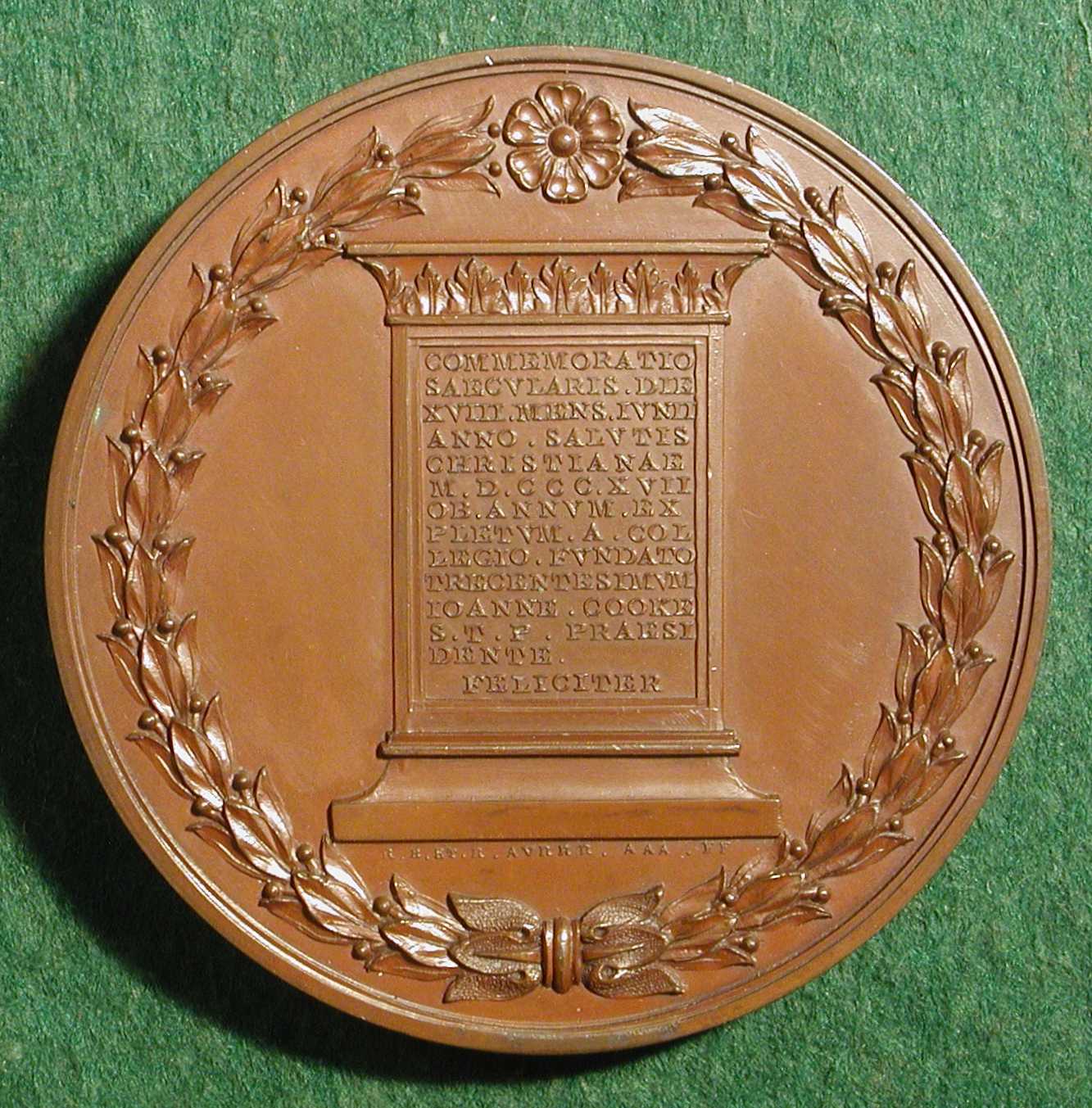 EX PLETVM. A. COL LEGIO. FVNDATO. TRECENTESIMVM IOANNE. COOKE S. T. P.