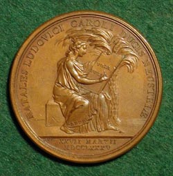 Rev: Woman seated writing on tablet NATALES LUDOVICI CAROLI DUCIS NEUSTRIAE