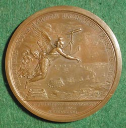 NEW BREAKWATER FOR CHERBOURG HARBOR DUVIVIER, Benjamin: France, 1786, Bronze, 69 mm Cherbourg is a harbor in northwestern France, located in Normandy, at the entrance to the English Channel. It is accessed by way of a triangular bay which is naturally sheltered on every side but the north. It was here that a huge breakwater, over two miles in length, was built by running across the open sea a series of 20 wooden cones, each 50 meters in diameter at their base and 20 to 24 meters in height, which were then filled with masonry. Work began in 1783. Louis XVI attended the immersion of the ninth cone on June 23, 1786, the event commemorated by this medal. The last cone was cast in 1788, but the project was abandoned during the French Revolution. Work began again under Napoleon who decided to resume its construction to provide a fort of defense. The dam was continued by Louis Phillipe and Napoleon III and was finally completed in 1853. It was further extended in 1889. The construction of the breakwater at Cherbourg resulted in the largest artificial harbor ever built, and its creation is considered to be one of the greatest achievements of the 18th and 19th centuries. Cherbourg is now a port of call for transatlantic steamers.