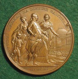 Rev: Arrival scene: King, Queen, and Dauphin led by City Tyche of Paris to