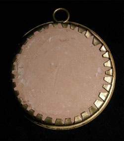 Uniface plaster medallion enclosed in brass ring with suspension loop