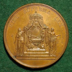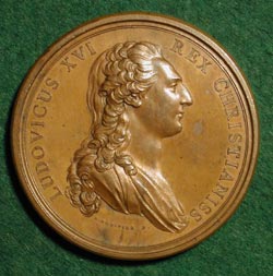 Bronze, 60 mm Louis XVI (1754-1793), King of France (1774-1792), was the grandson and successor of Louis XV. The obverse of this medal was engraved by Duvivier and was likely made in the year of the accession of Louis XVI to the throne, at age 20 in 1774. The reverse, by Blanc, was made in 1724, during the reign of Louis XV, shortly he reached his legal majority in 1723. In 1774 Louis XVI restored political privileges to the Parliaments, which had been restricted to a purely judicial role in 1771. The medal might possibly allude to this event. |