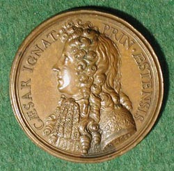 mm Cesare Ignazio d'Este (1674-1713) was a member of the Este family, one of the oldest of the former reigning houses of Italy. The Este family is in all probability of Lombard origin and descended from the princes who governed in Tuscany in Carolingion times. Their major base of power was in Modena, and for two centuries this dynasty had been among the most important families in Italy, and its court was perhaps the most splendid in Europe. |