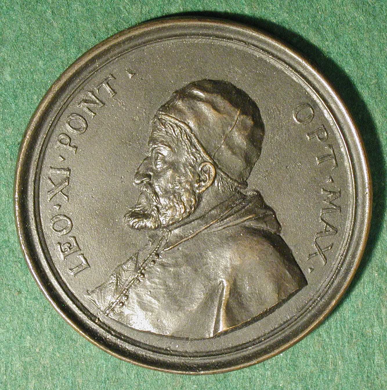 ALESSANDRO DE' MEDICI , POPE LEO XI SELVI, Antonio: Italy, ca.1740, Bronze (cast), 87 mm Alessandro de' Medici (1535-1605) was born in Florence. He acted as Cosimo de' Medici's ambassador in Rome from 1569, was made bishop of Pistoia in 1573, archbishop of Florence in 1574, and cardinal in 1583. He was elected Pope Leo XI on April 1, 1605, succeeding Clement VIII, but died on April 27 of the same year, just 26 days after becoming Pope. While in his various offices, his sympathies were very pro-French. |
