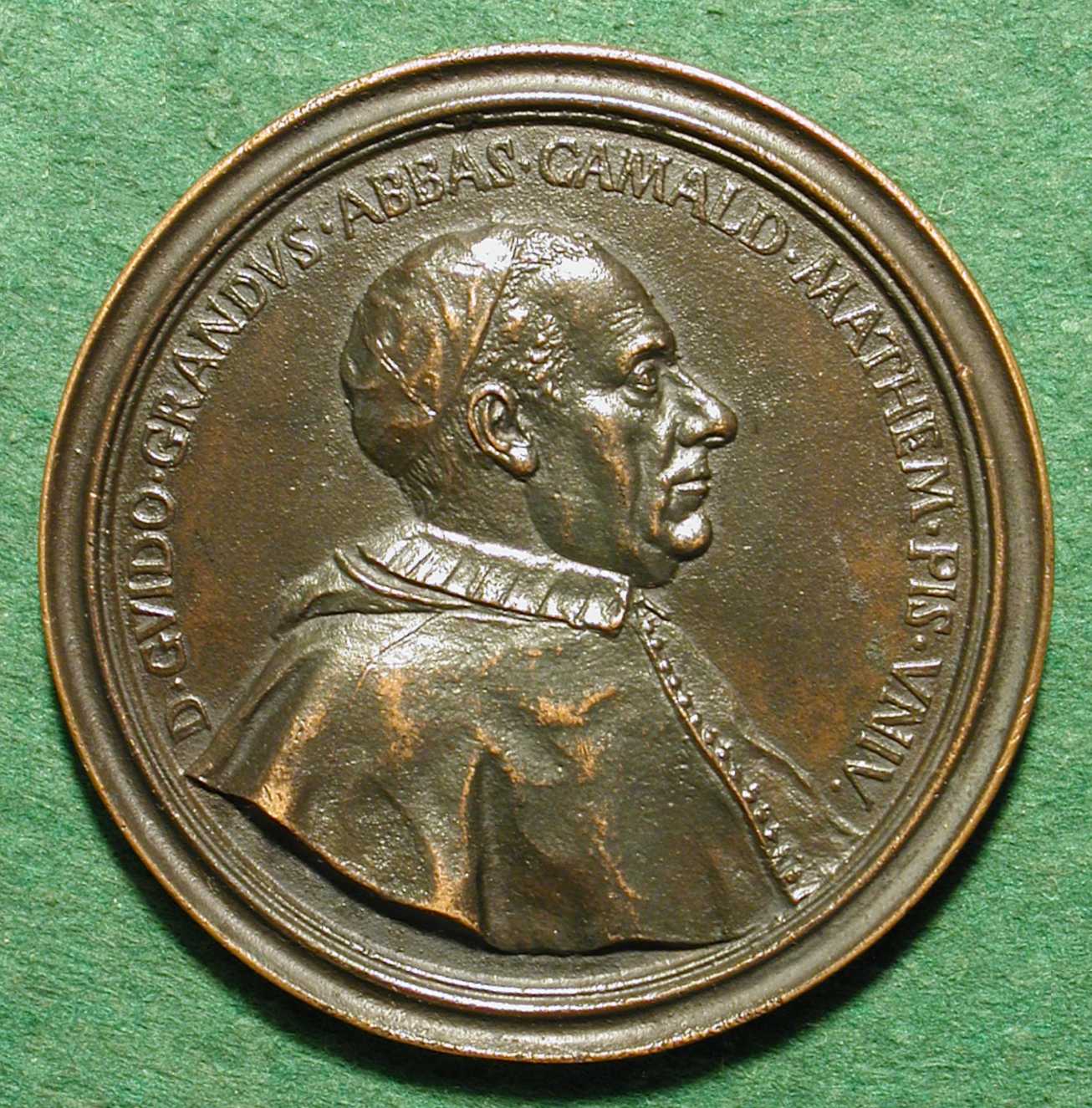 Obv: Bust of Guido Grandi (r) wearing a clerical cap and cloak