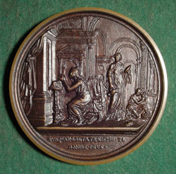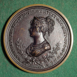 Maria Beatrice di Savoia, Principessa di Savoia, was born in 1792 in Turin, Italy. She was the daughter of Vittorio Emanuele I di Savoia, King of Sardinia, and Maria Theresia Erzherzögin von Österreich-Este. She married Franz IV Erzherzog von Österreich-Este (Francesco IV, Duke of Modena), son of Ferdinand Karl Erzherzog von Österreich and Maria Beatrice d'Este, Duchess of Modena, in 1812 in Cagliari, Sardinia, Italy. She died in 1840 at the age of 47 in Cattajo. The medal commemorates her early death. LINK to Portrait and Biography of Maria Beatrice di Savoia (from Wikipedia; in Italian) LINK to House of Savoy (from fact-index.com) |