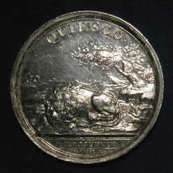 Jean: Germany, 1736, Silver, 46 mm Karl III Wilhelm (Charles-William III) (1679-1738), born in Durlach, was Margrave of Baden from 1709 until his death in 1738. At the beginning of his career, the Margrave was a military leader of considerable stature, and at the assumption of his power in 1709, Philipp Heinrich Müller engraved a medal depicting a lion suggesting forcefulness and strength. But this medal, which was engraved by Dassier two years before the death of Karl Wilhelm, shows on the reverse a tranquil lion, expressing the pathos of the margrave's exile among his Swiss allies (Eisler). A margrave is the lord or military governor of a medieval German border province. It is used as a hereditary title for certain princes in the Holy Roman Empire. Baden is a state in the southwest of Germany in the Black Forest. Its origins date from the 12th century, and its territory was ruled by a margrave from the 14th to 18th centuries. It was a sovereign country until it joined the German Empire in 1871, and it remained a Grand Duchy until 1918 when it became part of the Weimar Republic as the Republic of Baden. |