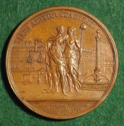 RESTORATION OF PEACE AT GENEVA DASSIER, Jean: Swiss, 1738, Bronze, 55 mm In the eighteenth century, Geneva had developed a system of government whereby its inhabitants were divided into three classes: the citizens by birth, who were entitled to citizenship and who were eligible to all offices; the bourgeois, who were able to attend the great council but who could not be members of the small, executive council nor hold public office; and the householders or commoners , who had no rights to citizenship whatsoever. At a certain point dissatisfaction towards this form of government emerged, the bourgeois and citizens revolted, and disorder broke out. This medal commemorates the quelling of such disorders and the restoration of harmony in Geneva. (from Thompson) See also the medal by Jean Duvivier, Peace of Geneva, which commemorates the same event. |