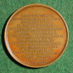 Obv: Bust of Wake GUILIELMUS WAKE ARCH. CANT.