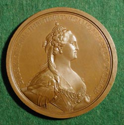 Obv: Bust of Catherine II (r); Legend in Cyrillic translated as: "By