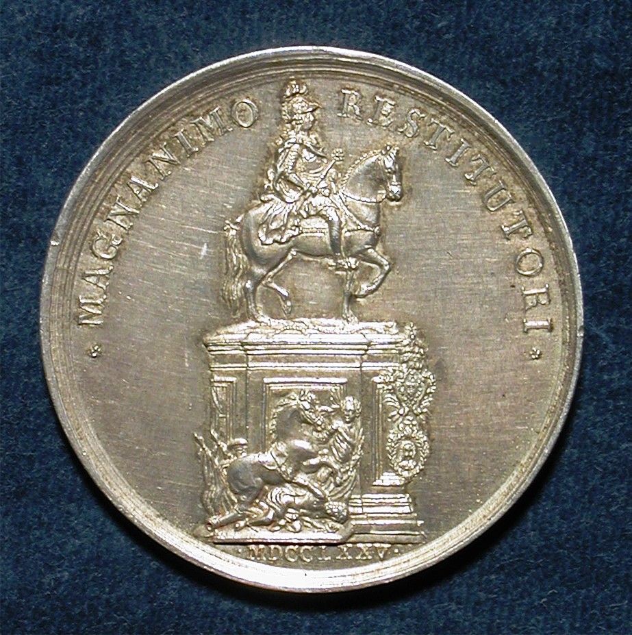 KING JOSÉ I OF PORTUGAL: GREAT LISBON EARTHQUAKE by GASPAR, José: Portugal, 1775, Silver, 46 mm José I Manoel Francisco (Joseph Emanuel Braganza) (1714-1777), King of Portugal from 1750-1777, was the son of Joao V, one in a long line of the Braganza dynasty in Portugal. The brilliant statesman Sebastiao José de Carvalho e Mello, Marques de Pombal, was the virtual ruler of the country during his reign. The reign of José I was characterized by a major earthquake, which struck Lisbon in 1755. The earthquake produced massive damage spawned by tsunamis and fires, leaving Lisbon in ashes and causing the deaths of as many as half of Lisbon’s inhabitants. Although it was not the strongest or most deadly earthquake in human history, its impact, not only on Portugal but on all of Europe, was profound and lasting. Its widespread physical effects aroused a wave of scientific interest and research into earthquakes and may have been the impetus for starting the infant science of seismology. Depictions of the earthquake in art and literature can be found in several European countries, and these were produced and reproduced for centuries following the event, which came to be known as "The Great Lisbon Earthquake." (Taken, in part from University of California at Berkeley). This medal, struck in 1775, commemorates the restoration of the city of Lisbon following this devastating earthquake. Lusitania was an ancient Roman province including approximately all of modern Portugal. It is still often used as an alternative name for Portugal. LINK to 1755 Lisbon Earthquake (from About.com) LINK to 1755 Lisbon Earthquake (from University of California, Berkeley) LINK to Portrait and Biography of Joseph I of Portugal (from wikipedia) LINK to Statue of José I in Lisbon (Weiss photo) LINK to general discussion of Earthquakes (Link kindly provided by Steven in Mrs. Kelly Harris's 4th grade class) HOME PAGE