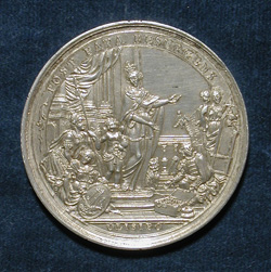 KING JOSE I OF PORTUGAL: GREAT LISBON EARTHQUAKE by GASPAR, Jose: Portugal, 1775, Silver, 46 mm Jose I Manoel Francisco (Joseph Emanuel Braganza) (1714-1777), King of Portugal from 1750-1777, was the son of Joao V, one in a long line of the Braganza dynasty in Portugal. The brilliant statesman Sebastiao Jose de Carvalho e Mello, Marques de Pombal, was the virtual ruler of the country during his reign. The reign of José I was characterized by a major earthquake, which struck Lisbon in 1755. The earthquake produced massive damage spawned by tsunamis and fires, leaving Lisbon in ashes and causing the deaths of as many as half of Lisbon’s inhabitants. Although it was not the strongest or most deadly earthquake in human history, its impact, not only on Portugal but on all of Europe, was profound and lasting. Its widespread physical effects aroused a wave of scientific interest and research into earthquakes and may have been the impetus for starting the infant science of seismology. Depictions of the earthquake in art and literature can be found in several European countries, and these were produced and reproduced for centuries following the event, which came to be known as "The Great Lisbon Earthquake." (taken, in part, from University of California, Berkeley) This medal, struck in 1775, commemorates the restoration of the city following this devastating earthquake. LINK to 1755 Lisbon Earthquake LINK to 1755 Lisbon Earthquake (from University of California, Berkeley)