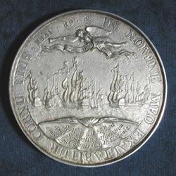 EMBARKATION OF CHARLES II AND HIS COURT AT SCHEVENINGEN ON HIS RESTORATION TO ENGLAND ABEELE, Pieter van: England, 1660, Silver, 70 mm Charles II (1630-1685) was King of England, Scotland and Ireland from 1660 to1685. After the execution of his father, Charles I, he fled to France but in 1650 was invited to Scotland and crowned king in 1651. Charles' attempted invasion of England was repulsed at the Battle of Worcester by Oliver Cromwell, and he was forced back into exile. In 1660 Charles issued the Declaration of Breda, in which he promised religious toleration and amnesty for his enemies. Parliament agreed to the Declaration, and Charles left Holland on June 2, 1660 and was crowned king in May 1660, ushering in the Restoration. Charles attempted to preserve royal power, accepting secret subsidies from Louis XIV of France in exchange for promoting Roman Catholicism. Charles' support of Louis led to the Dutch Wars (1672-74). Conflict was further fueled by strong anti-Catholic feeling, manifested in the "Popish Plot" rumor and the Exclusion Crisis (1679-81) when attempts were made to exclude Charles' brother, the Catholic Duke of York (later James II), from the succession. LINK to Battle of Worcester (from British Civil Wars) LINK to Declaration of Breda (from British Civil Wars) LINK to Restoration of the Stuart Dynasty (from World History at KMLA) LINK to Dutch Wars (from World History at KMLA) LINK to Popish Plot (from britannica.com) |