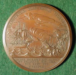 CAPTAIN JAMES LAWRENCE FURST, Moritz: USA, 1813, Bronze, 64 mm James Lawrence (1781-1813) served as lieutenant against Tripoli, and was second in command under Decatur, in the Intrepid, when the Philadelphia was destroyed off Tripoli. In 1813, as master-commandant, with the Hornet, he captured the British brig-of-war Peacock. In 1813, as captain, he commanded the Chesapeake and fell, mortally wounded, in the engagement with the British ship Shannon. His last words, when carried below, were, "Don't give up the ship!" LINK to painting and biography of Captain James Lawrence (from Naval Historical Center) |